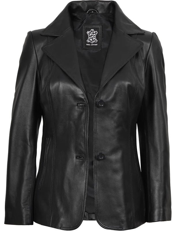 Made from real lambskin leather, the Marbella blazer offers a smooth, luxurious feel with a refined semi-formal silhouette. Its broad lapel, two-button closure, and clean seam detailing create a polished look that transitions effortlessly from workdays to evenings out.